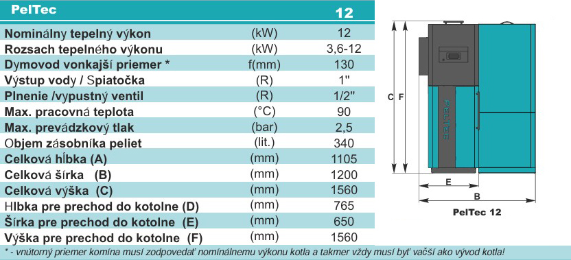 s peletovým horákom a zásobníkom peliet 340L, nominálny tepelný výkon 12kW