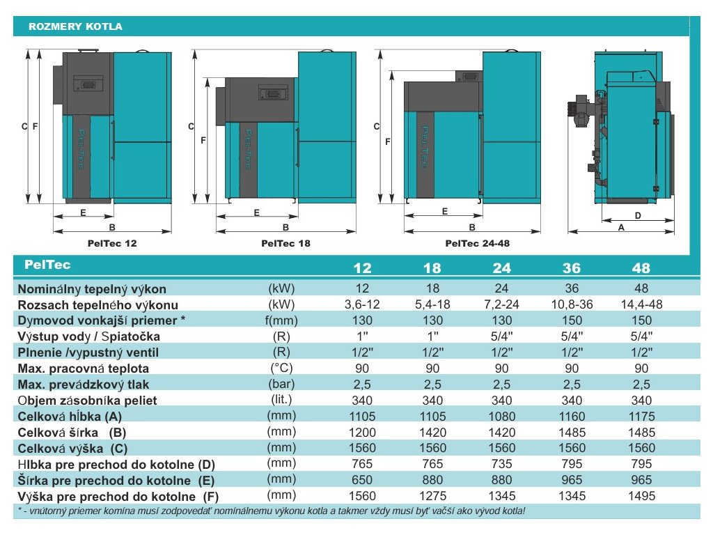 Teplovodný peletový kotol na centrálne vykurovacie systémy, PelTec, s peletovým horákom a zásobníkom peliet 340L, nominálny tepelný výkon