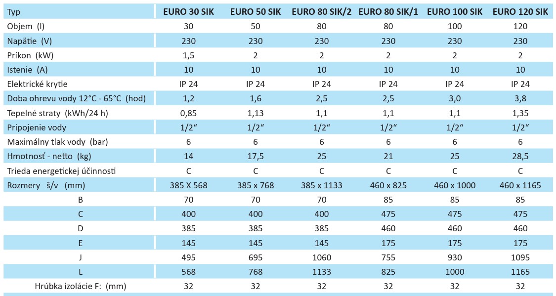 Elektrický tlakový ohrievač vody ELÍZ EURO SIK je vhodný pre jedno alebo viac odberných miest. Určený je pre zvislú nástennú montáž.