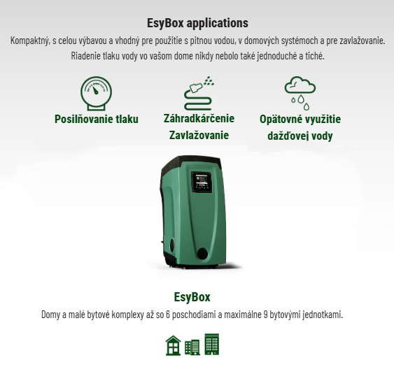 - automatický posiľnovací systém pre zásobovanie vody v domácich alebo komerčných rozvodoch