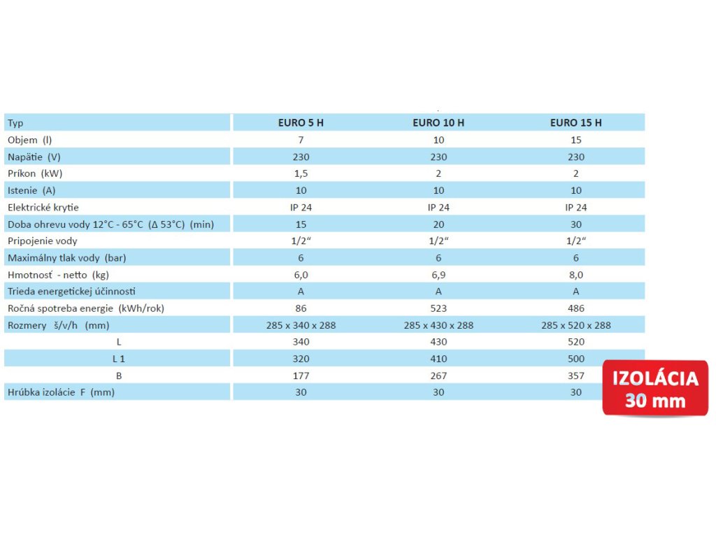 Elektrický tlakový ohrievač vody ELÍZ EURO H je určený na inštaláciu pod umývadlo, alebo kuchynský drez a poskytuje rýchlu prípravu teplej vody. Tlakové (uzavreté) ohrievače vody sú vhodné pre zásobovanie jedného alebo viacerých odberných miest v domácnosti, na chate a všade tam, kde nie je centrálny rozvod teplej vody. Možno ho napojiť k akémukoľvek prívodu studenej vody. Sú dodávané s poistným ventilom so spätnou klapkou.