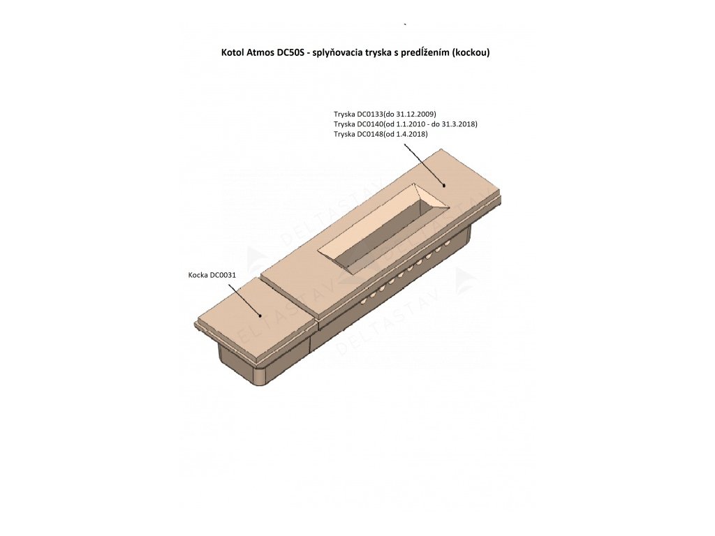 Pozor!!! V kotle Atmos DC50S je pri tryske aj predĺženie - kocka s rozmermi 200 x 200mm. Táto kocka nie je súčasťou balenia trysky, ale je ju potrebné doobjednať zvlášť tu: