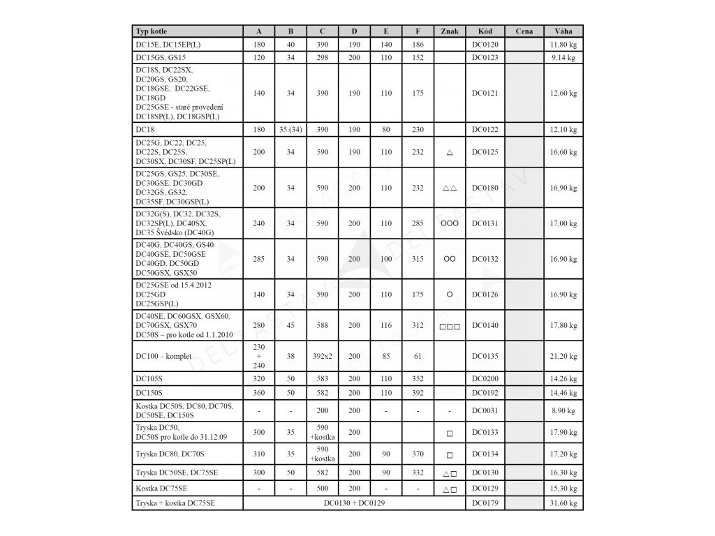 Pre kotle DC50S vyrobené do 31.12.2009 je určená tryska DC0133.