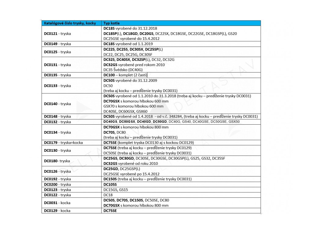 Pre kotle DC50S vyrobené od 1.1.2010 do 31.3.2018 je určená tryska DC0140.