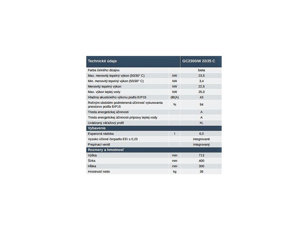 | CONDENS GC2300iW 22/25 C CR120 | GC2300iW 20/25 C s prietok. ohrevom TUV * | - | CR 120+čidlo |